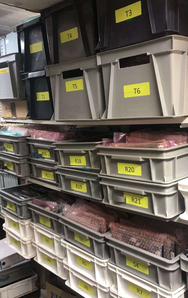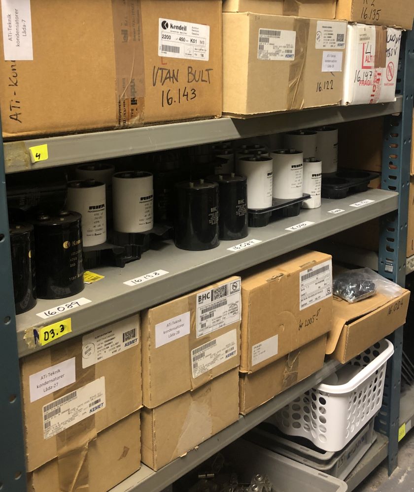 ATi-Teknik har ett förråd med mycket olika saker, en del nytt men det mesta begagnat men fungerande. Det är elektriska och elektroniska komponenter och en hel del annat.